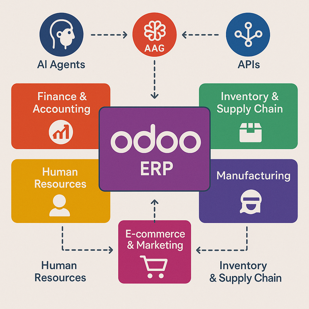 The integration of AI + Odoo isn’t about replacing human decision-making; it’s about augmenting it. Let’s break down how AI agents, RAG, and APIs enhance ERP functions across the board: